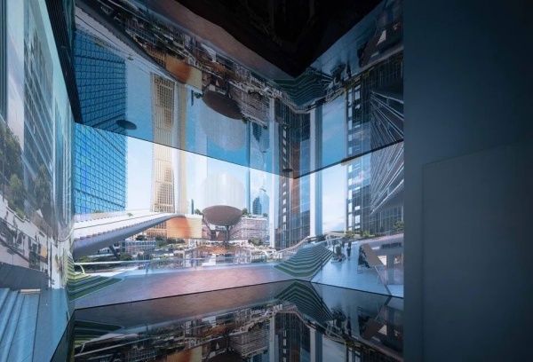 方案通過前沿的視覺語言、沉浸的呈現(xiàn)方式和互動(dòng)的空間體驗(yàn),為超級(jí)總部基地的城市理念和價(jià)值觀賦形置景。聲音和動(dòng)態(tài)影像不露痕跡地融入場(chǎng)景,對(duì)展品及歷史背景進(jìn)行補(bǔ)充解釋的同時(shí),也使展覽跳脫出按部就班的敘述,完成錯(cuò)時(shí)性與戲劇感的營(yíng)造。展覽不僅通過沉浸式的蒙太奇空間體驗(yàn)幫助不同背景的觀眾更主動(dòng)地參與進(jìn)敘事之中,同時(shí)延續(xù)了工作室對(duì)于多角度敘事的探索,建立空間、物與文字的關(guān)聯(lián),為單一空間賦予多種敘事的可能性和閱讀深度。展陳描繪出超級(jí)總部基地在大灣區(qū)建設(shè)過程中作為城市門戶的藍(lán)圖,展現(xiàn)城市建設(shè)成果,用國(guó)際化視野、前瞻性思維、創(chuàng)新性的設(shè)計(jì)打造了符合超總基地的高水平規(guī)劃、高標(biāo)準(zhǔn)建設(shè)的展示空間,共同見證深圳這座充滿機(jī)遇和活力的大都市在不遠(yuǎn)的未來成為影響力卓著的全球標(biāo)桿城市。