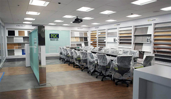 第二是天花板位置,在天花板四個位置裝上白色有機鏡子,內部安裝白熾燈,可以使得展位通體透明,讓人感到輕巧明快,不僅可以節省燈光的使用與電費,并且可以增加空間感。