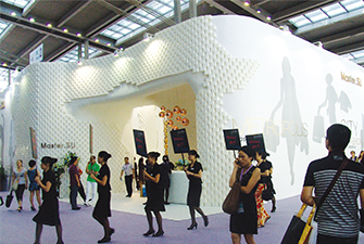 陳列設計的技巧手法需要在這一層次得以充分展現。這里主要是針對展示的商品、道具、燈光等做有效的搭配組合,通過藝術美的形式激發參觀者細致觀摩的欲望。與大展位相比較而言,中小展位不可能做服裝秀,也不可能使用超大音響,而更適合做靜態展或小型動態展。