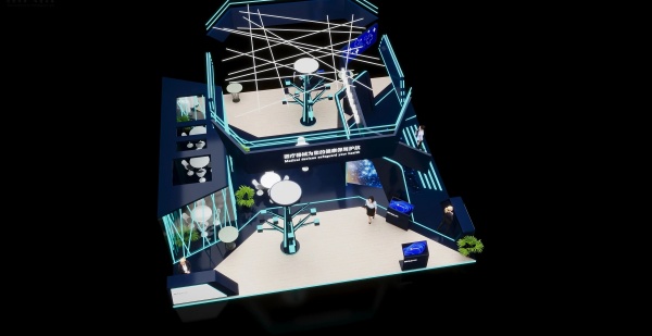 醫(yī)療的進步從來不是冷冰冰的技術迭代,而是人類用最前沿的智慧守護對健康的期盼。在人類追求健康的長河中,科技始終是最有力的助推器。本組展臺設計以科技藍與深邃黑為基調(diào),打造一座詮釋"科技服務人類健康"這一理念的醫(yī)療展臺。尖端醫(yī)療科技的發(fā)展,終將回歸于守護每一個珍貴的生命。