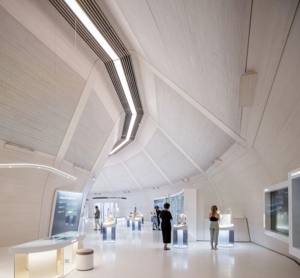 整體采用開放式布局,以簡(jiǎn)潔流暢的線條勾勒出空間框架,象牙白與高級(jí)灰的碰撞中,270°環(huán)繞式展墻如畫卷舒展,燈光柔和,營(yíng)造出現(xiàn)代高級(jí)的氛圍感。展廳動(dòng)線流暢自然、層次分明,從入門的品牌形象展示,到核心產(chǎn)品陳列,再到洽談交流空間,層層遞進(jìn),逐步加深參觀者對(duì)品牌與產(chǎn)品的認(rèn)識(shí)。